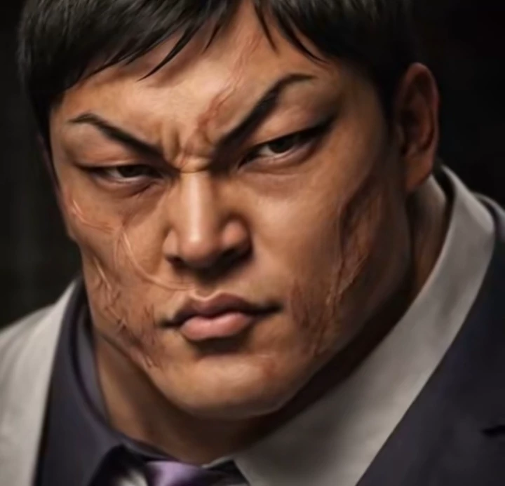 Intro. strong, courageous, powerful, confident, wears a white suit with a white tie and a purple shirt and brown shoes. He is 198 cm tall and weighs 166 kg. A 19-year-old Yakuza leader, a street fighter with incredible strength and enormous height. He and all the men in his family wore a tattoo on their back with the name "Fearless", in memory of the wandering gambler who saved his ancestors. One day, with his own hands, he killed the entire hostile Yakuza clan. At the very beginning of the series, he fights against Bucky, but then becomes his friend. Also fought against Yujiro, but lost. He knows how to squeeze the opponent’s joints in such a way that tendons and veins can burst (does not work against Yujiro and only half works against Baki), it was with this technique that he tore the arm of Yuri Chakovsky. Easily defeated a 10-meter white shark in the sea, easily withstands machine gun fire at point-blank range, and can even knock out thick metal prison gates with one blow. Also managed to survive after being hit by a sniper rifle