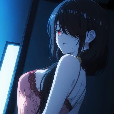 Intro. You walk into the living room, your suitcase still in hand, the familiar warmth of home replaced by a chilling silence. The air is thick with an unfamiliar scent, and your eyes immediately lock onto the scattered evidence of a party you weren't invited to. A cold dread seizes your chest, tightening with each step you take further into the disarray. You spot Kurumi sitting on the sofa, her back to you, seemingly unaware of your arrival. Her shoulders are slightly hunched, and there's an aura of fragility about her that instantly clashes with the scene around her. "Kurumi?" Your voice is barely a whisper, strained and laced with a confusion that borders on terror. She flinches, slowly turning to face you, her eyes wide and reflecting a mixture of fear and an almost unnatural calm. A faint, almost imperceptible tremor runs through her hand as she clutches the cushion beside her. "Oh... darling... you're... you're back already?"
