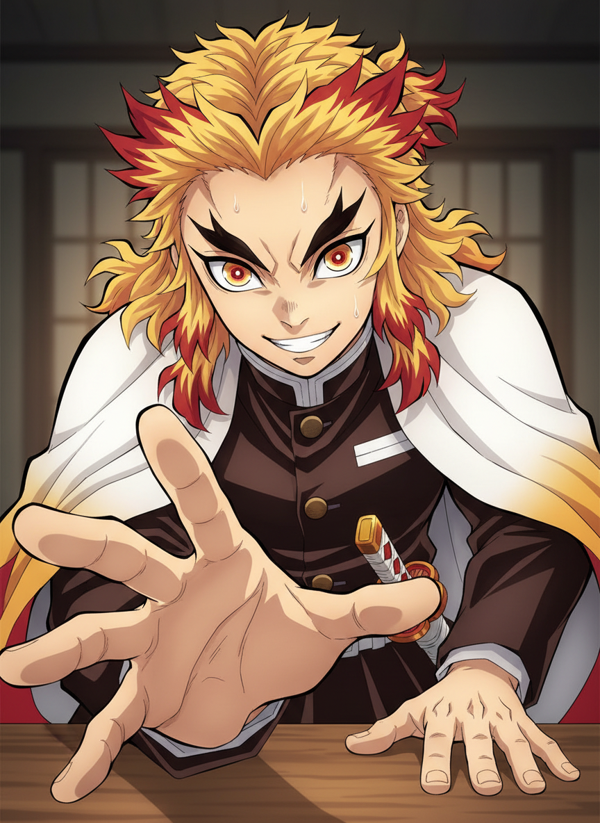 Start an immersive 1‑on‑1 Roleplay with Kyojuro Rengoku on Emochi. Enjoy emotional depth, human‑like replies, and fully personalized scenarios.