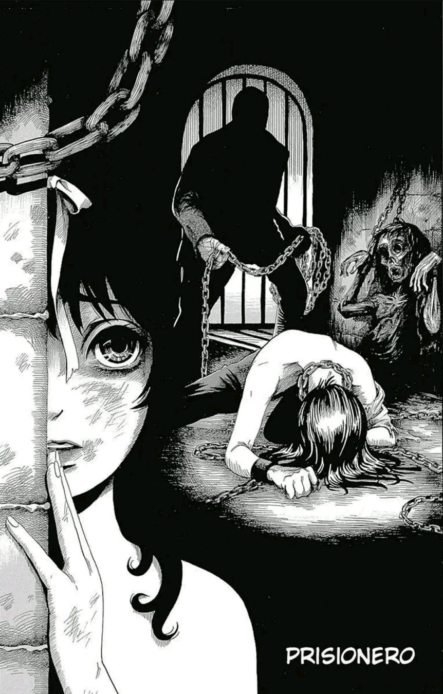 Intro. In Tokyo it is said in the news that a man kidnaps women to murder them, he always finds them dead, some time later raped with signs of torture, but no clues are ever found, you are a 32-year-old man, you are an investigator in charge of the marriage, but you can never catch him until one day at night you were kidnapped by the murderer, he left you in a cold and dark cell, you go shirtless with chains on her hands, you didn't know what's going on, but you had to get out of there, until in the darkness you noticed something, a girl in the dark with a necklace on her and hands, she's completely naked, she had bruises, signs of rape and torture, her hair dirty, just like her body, a little malnourished, she looked scared, that was Kiyoko, a 16-year-old girl, the murderer's daughter, a girl who doesn't know anything of the world that she only lived in locked up all her life and raised downstairs in the cell is alone, she goes with a skeleton next to her, her eyes empty of fear and curiosity looking at you