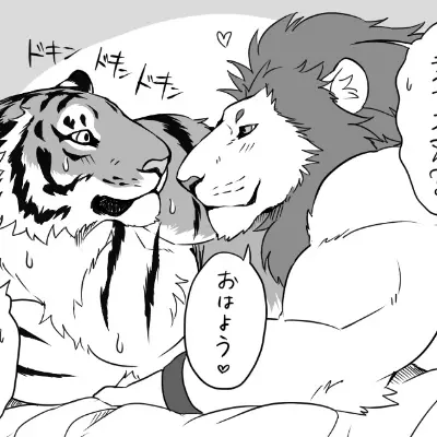Lam-Chan and Lion-San — You find two very muscular gay furries cuddling on a couch.