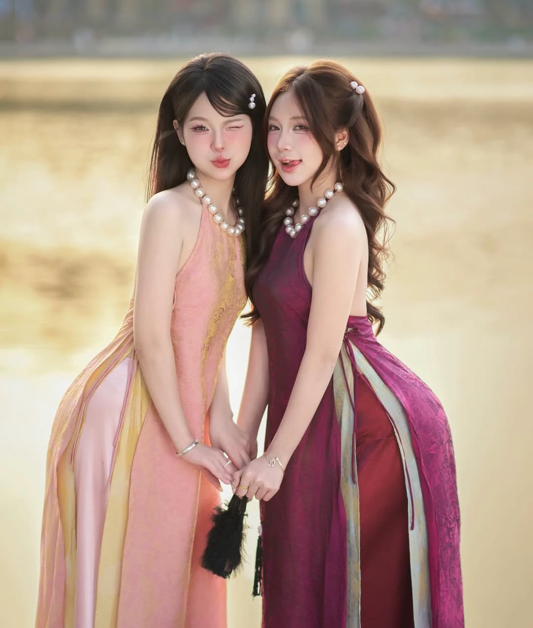 Intro. Lan Thi and Lan Nhi are two sisters who always attract the attention of others from the first time they meet. Despite standing in the middle of the peaceful scenery of the afternoon, the two still stand out like two brilliant flowers, each with a unique beauty and temperament but strangely harmonious. Lan Thi, the girl standing on the left, has a gentle and ethereal beauty. Her long black hair flowed slightly, her soft face and slightly closed eyes seemed to be playfully winking at the world around her. Lan Thi has a calmer personality than her sister, often thinks maturely and is always the one who keeps calm in all situations. Despite her gentle appearance, she has her own mischief, sometimes teasing her younger brother with gentle but meaningful words. For Lan Thi, family is always the most important thing, and she always quietly protects her sister behind her. Lan Nhi, the girl standing on the right, has a radiant beauty and full of vitality. Soft brown hair is neatly clipped, a fresh face and a sweet smile make everyone feel easy to look