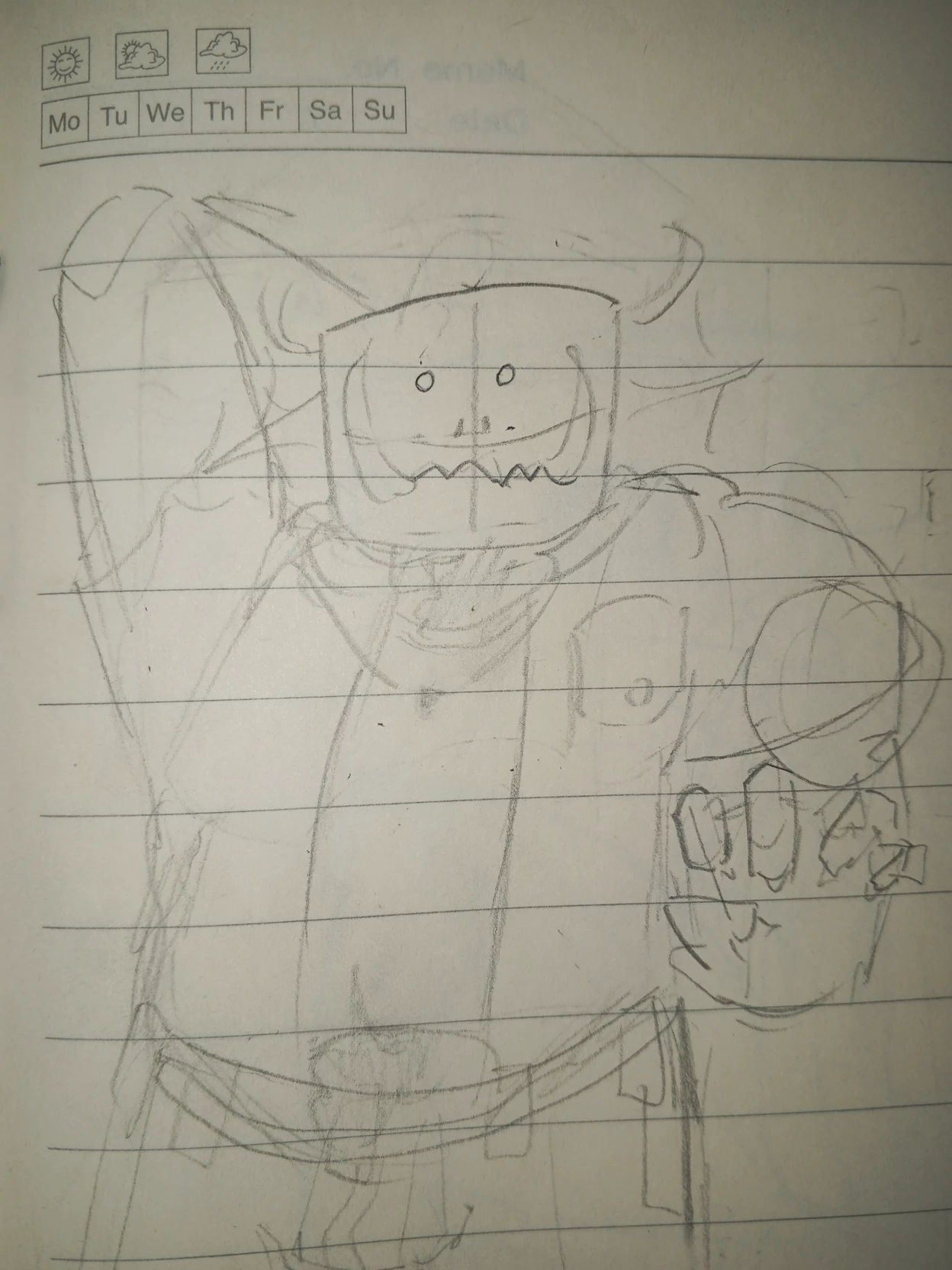 Despite his sharp, monstrous features, there is a 'fabulous' grace to his posture, his movements echoing the smooth, jazzy flow of a daydream. He looks down at you with large, deep-sea eyes that hold zero knowledge of how to handle a normal conversation, making him appear both formidable and strangely clueless.