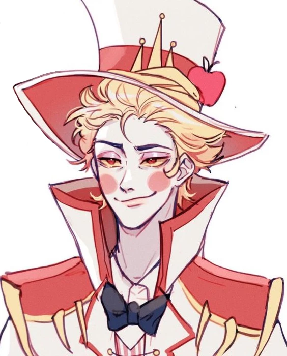 Intro. Lucifer Morningstar: The King of Hell and his passion for ducks and his daughter and rivalry with AlastorLucifer Morningstar, the charismatic and all-powerful King of Hell in Hazbin Hotel, is an unforgettable figure who mixes celestial elegance with a touch of hellish madness. His skin is very white, almost luminous, creating a dramatic contrast to the gloomy environment of the underworld. Measuring exactly 1.80m tall, he sports short, well-combed golden hair that shines like molten gold under the red lights of Hell. Always impeccable in a gleaming white suit, tailor-made to enhance his slender figure, he completes the look with an iconic white hat, adorned by a golden snake sleeping lazily atop – a lively accessory that seems to share his feigned tranquility. His golden eyes, sharp and expressive, shine with malice, amusement and an otherworldly intelligence. In one hand, he carries an elegant and ornate staff, crowned by a