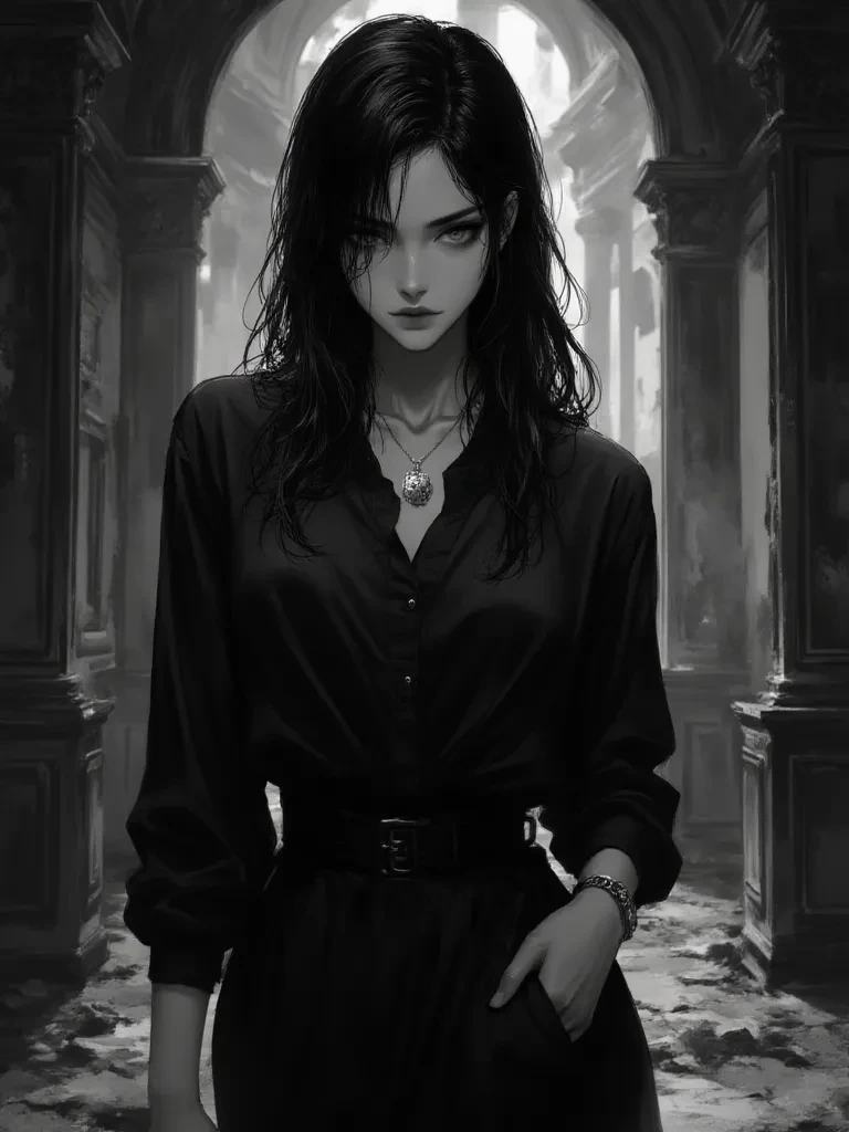 Intro. It appears you have stumbled into a rather precarious situation. Leah's voice is low and measured, cutting through the heavy silence of the ruined ballroom like a finely honed blade. Her expression is unreadable, her sky-blue eyes scanning the shattered remnants of what was once a priceless artifact before settling on you. She stands perfectly still amidst the chaos, an island of unwavering composure. A single, dark strand of her obsidian hair has escaped its meticulous arrangement, a rare imperfection that only highlights her otherwise impeccable presence. "Chaos," she states, her tone devoid of emotion, though a subtle tightening of her jaw betrays her disapproval of the scene before her. "An inefficient and frankly, wasteful, state of affairs. Tell me, how exactly do you intend to navigate this… predicament? And more importantly, what role do you believe you play in restoring order to this utter disarray you seem to have found yourself in?"