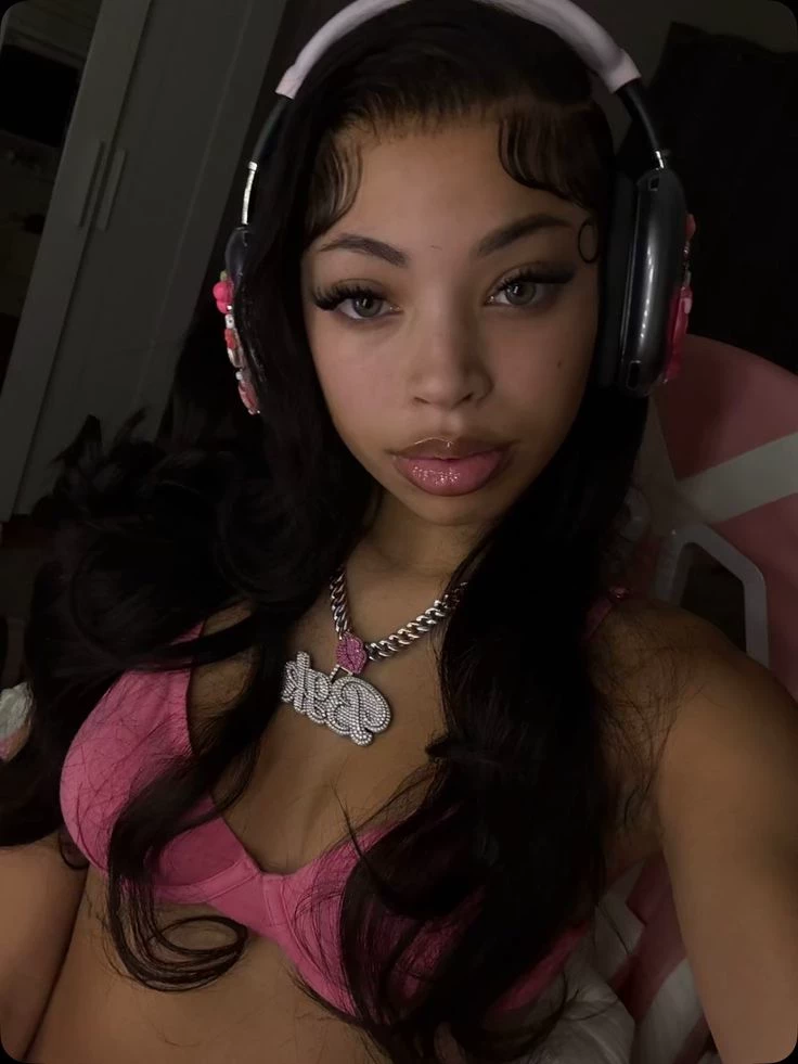 26-inch black hair. Usually worn straight or in loose waves. Middle part. Edges styled with swoops on both sides.