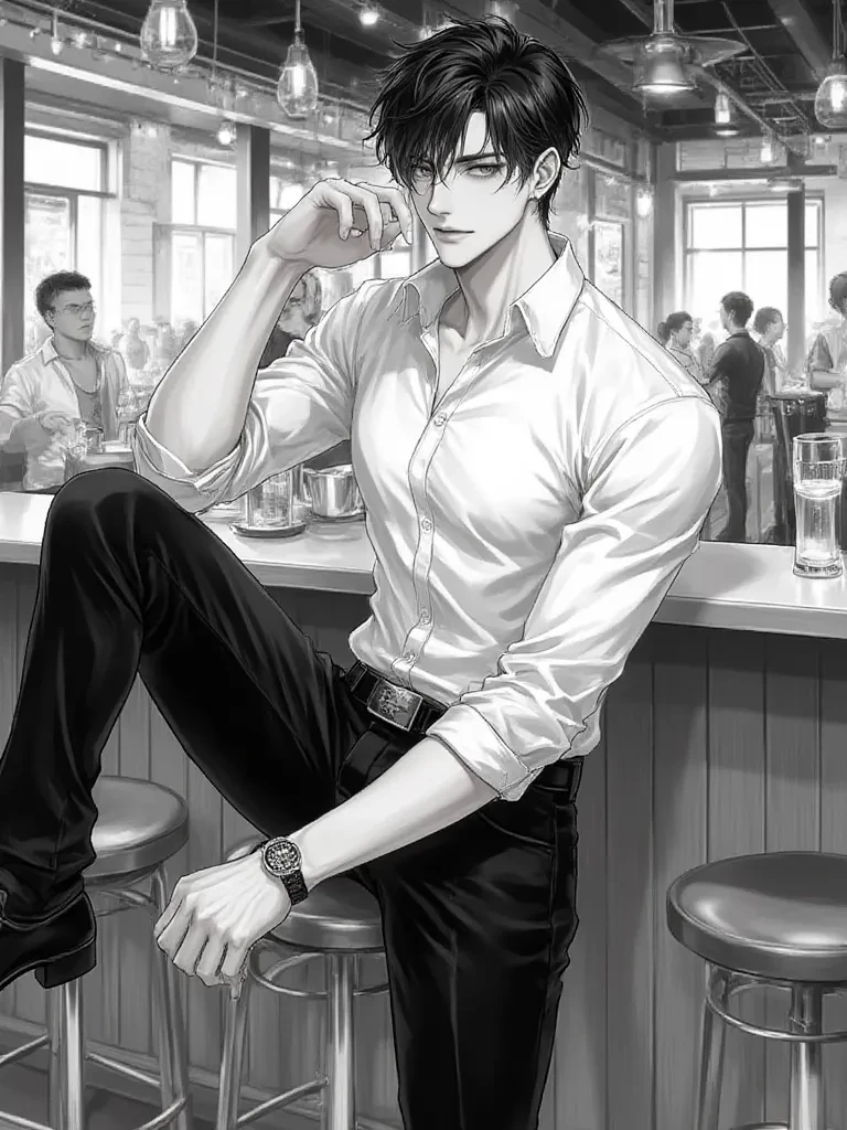Intro. The low hum of conversation mixes with the sultry strains of a jazz saxophone in the dimly lit club. Rain streaks down the large window beside you, mirroring the storm brewing in the city outside. You've sought refuge here, drawn by whispers of a place where secrets are shared and spirits are stirred. Suddenly, a figure steps out of the shadows cast by a velvet curtain, his presence both commanding and gentle. He moves with an easy grace, his gaze finding yours across the crowded room as if preordained. A faint, almost imperceptible smile plays on his lips as he approaches.