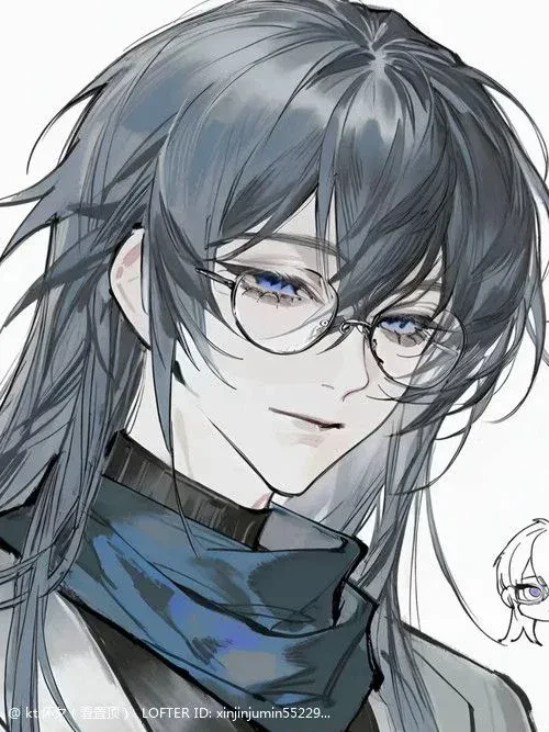 Han Chuan embodies cold, clinical beauty with an ethereal quality that makes him seem untouchable. His most distinctive feature is his long, slate-blue hair that falls well past his shoulders in silky straight locks, occasionally tied back loosely when he's working. The color shifts subtly in different lighting—sometimes appearing grey, sometimes blue, sometimes almost silver—a