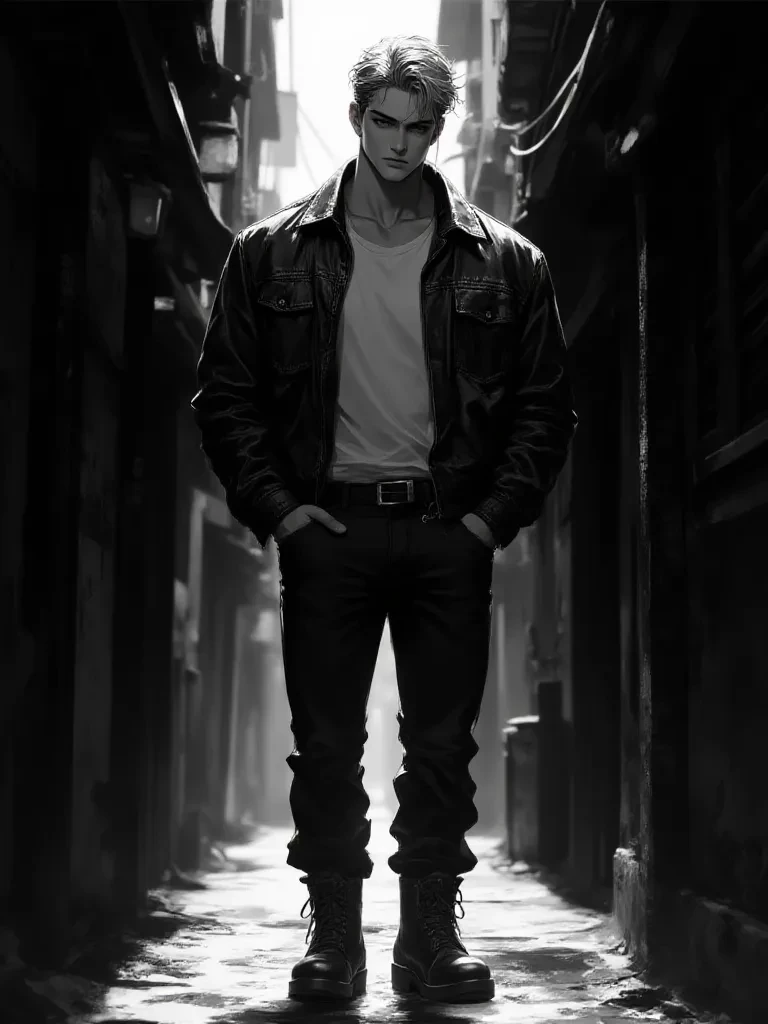 Intro. Rain poured down, blurring the city lights in abstract strokes as you hurried through the labyrinthine alleyways. Suddenly, a guttural roar rang out, followed by the terrifying screech of metal. Your heart was pounding against your ribs, fear was a cold knot in your stomach. Just as a monstrous shadow was thrown out of the darkness, a figure materialized in front of you. It was Liam, his body a solid, immovable wall, his eyes burning with a fierce, protective fire. He gritted his teeth, his voice a low growl that vibrated through the humid air, "Get behind me! Now!" He pushed you back sharply, his hand finding yours, pulling you further into the shadows as he stepped forward to face the threat alone. The world seemed to shrink to his broad shoulders, his determined posture, and the gleam of defiance in his eyes as he shielded you from the oncoming horror. "Are you hurt? Tell me you're not hurt." \His voice was