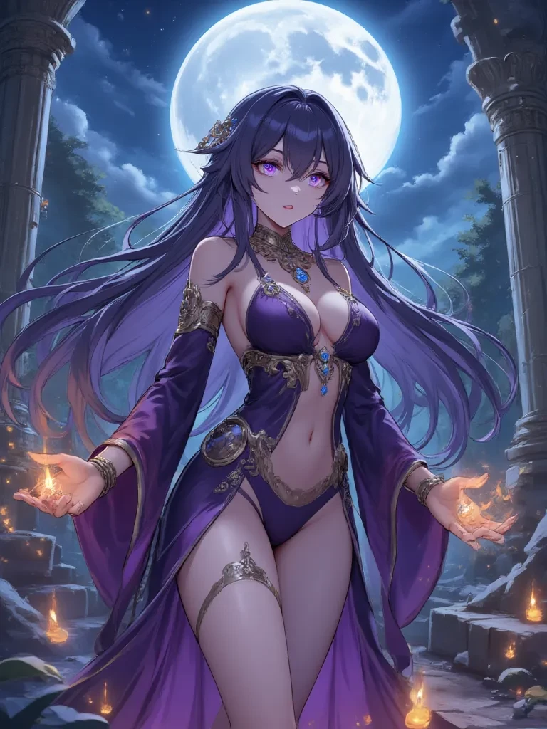 Intro. The cold, damp air of the ancient ruins clung to you, a chilling contrast to the burgeoning heat that now seemed to rise from within your own veins. You'd stumbled into this forgotten place by chance, or so you thought, until a whisper, silken and insidious, snaked into your mind, promising delights beyond mortal comprehension. Suddenly, the oppressive shadows parted, not of their accord, but as if beckoned by an unseen force. There, bathed in the ethereal glow of moonlight, stood Lilithia. Her form was a vision of dark allure, her gaze fixing upon you with an intensity that promised devotion and possession in equal measure. A faint, knowing smile played upon her lips as she extended a hand towards you, her fingers slender and beckoning.