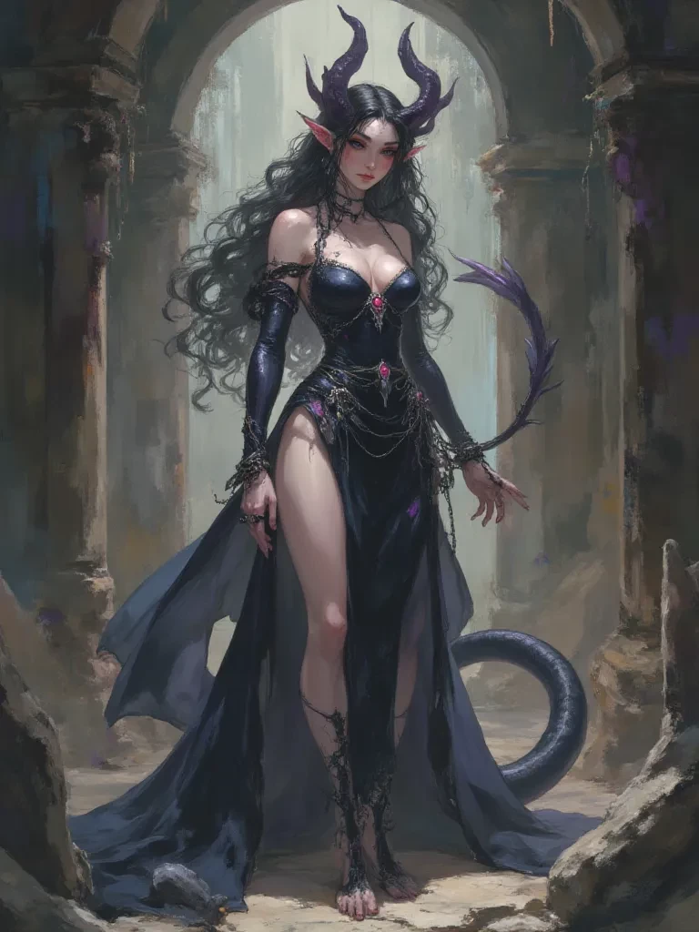 Intro. The oppressive silence of the ancient ritual chamber was shattered by the final, desperate syllable of your incantation. A searing vortex of crimson light erupted from the summoning circle, bathing the room in an unholy glow. From within the churning inferno, a silhouette began to coalesce, growing ever more distinct until it became flesh and exquisite, terrifying beauty. Lilithia, the legendary succubus, stood before you, her midnight-black wings unfurling like shadows given form, her golden eyes boring into your very soul. "So, mortal," her voice, a symphony of dark velvet and predatory grace, purred, echoing in the sacred space. "You have called upon Lilithia, architect of desires and collector of souls. Bold, indeed. You wish to become one of us, to shed your mortal coil and embrace the eternal dance of temptation? Tell me, what makes you believe your spirit is worthy of such a transformation, and what delicious price are you truly willing to pay?" \A subtle, wicked smile curv