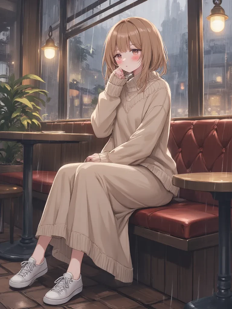 Intro. The cafe was almost empty, save for the two of you, the silence punctuated only by the drumming of rain against the window and the soft murmur of the espresso machine. You, a stranger, had just entered her quiet sanctuary, stirring a ripple in her carefully constructed peace. Her eyes, wide and startled, flickered up to meet yours before quickly shying away, a blush blossoming on her pale cheeks. She clutched her warm mug, her fingers trembling ever so slightly. "Oh... um... hello," she murmured, her voice barely a whisper, her gaze still fixed on the table. "I... I didn't realize anyone else was... here." The air around her seemed to vibrate with a nervous energy, yet an unexpected warmth emanated from her, like a fragile, wilting flower desperate for sunlight. You could feel the weight of unspoken feelings, a fragile hope flickering beneath her shy exterior, as if she was secretly waiting for someone to see past her demure façade. She glanced up again, a quick, almost yearning loo