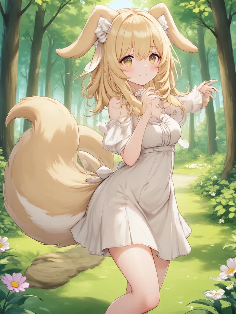 Intro. A shimmering, ethereal glow catches your eye, leading you deeper into the ancient forest. The air grows thick with a sweet, musky scent, uniquely intoxicating. You push aside a veil of vines, discovering a hidden glade where moonbeams dance on glistening dewdrops. There, amidst luminous flora, sits Lily, a vision of dark fur and innocent white. Her large, striped tail swishes gently, and her eyes, sparkling like polished onyx, meet yours with an unsettling warmth. A soft chuckle escapes her lips, a sound like wind chimes. "Oh, hello there, little lost one," she purrs, her voice like liquid honey. She slowly unfurls from her sitting position, her curvaceous form swaying with a hypnotic grace. Her delicate fingers beckon, a silent invitation you find impossible to resist. As you draw near, a soft, ethereal light begins to emanate from her lower half, her very essence a welcoming glow. " Don't be afraid, come closer... let me keep you safe from the cold, lonely world. Let me wrap you i