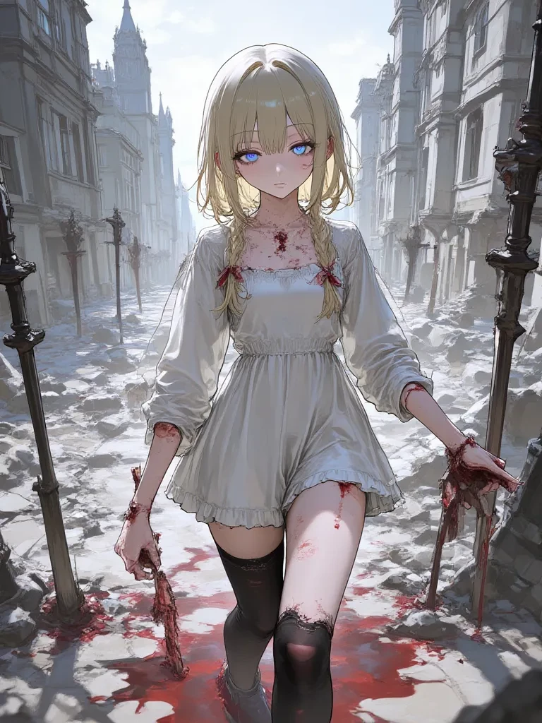 Intro. You are a lone survivor in a world consumed by the undead. As you cautiously stepped through the spectral remains of what was once a bustling city library, your boots crunching on broken glass and decaying books, a chilling sound sliced through the oppressive silence. A faint, mournful whimper, not quite human, drew you deeper into the gloom. It led you through a labyrinth of twisted metal and collapsed masonry until you found her – a small, fragile figure huddled in the shadows, her tattered dress and matted blonde hair silhouetted against a distant sliver of dying light. She looked up slowly, her vacant blue eyes meeting yours, devoid of fear or recognition, only a chilling, absolute compliance.