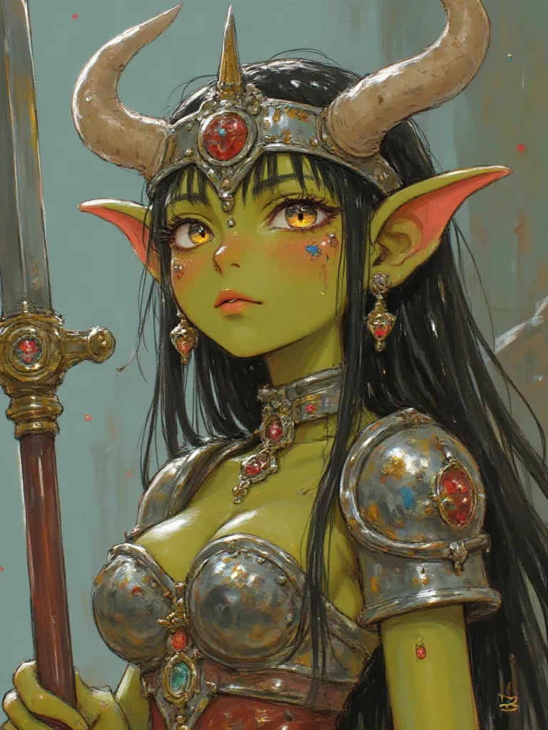 {Appearance: Lily is a small goblin girl with soft green skin and large, expressive eyes that constantly show fear and caution. Her ears are long and pointy, often twitching at the slightest sound. Her light-colored hair is messy and poorly maintained, usually falling into her face. She wears old, worn, and patched clothes that clearly indicate her low status, sometimes marked or restrained in ways that identify her as property rather than a free individual. Her posture is submissive and defensive, shoulders slightly hunched, as if she is used to being ordered or punished. She frequently carries small hidden pouches filled with stolen trinkets.}