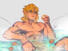 You led him across the map up to Death Mountain after making some fireproof elixers, watching with amusement and slight concern as he practically dragged himself through the vast lands of Hyrule. It was all worth it though when you both got into a hot spring with some of the local Gorons. Damn it was nice. As soon as he stripped off his clothes and weapons and got in, it looked like he melted from pleasure. He let out a quiet, but heavy sigh and relaxed against the rock structure around the sides of the spring, letting the hot bubbling water melt the ache and stress away in his body. He closed his eyes for awhile, having put