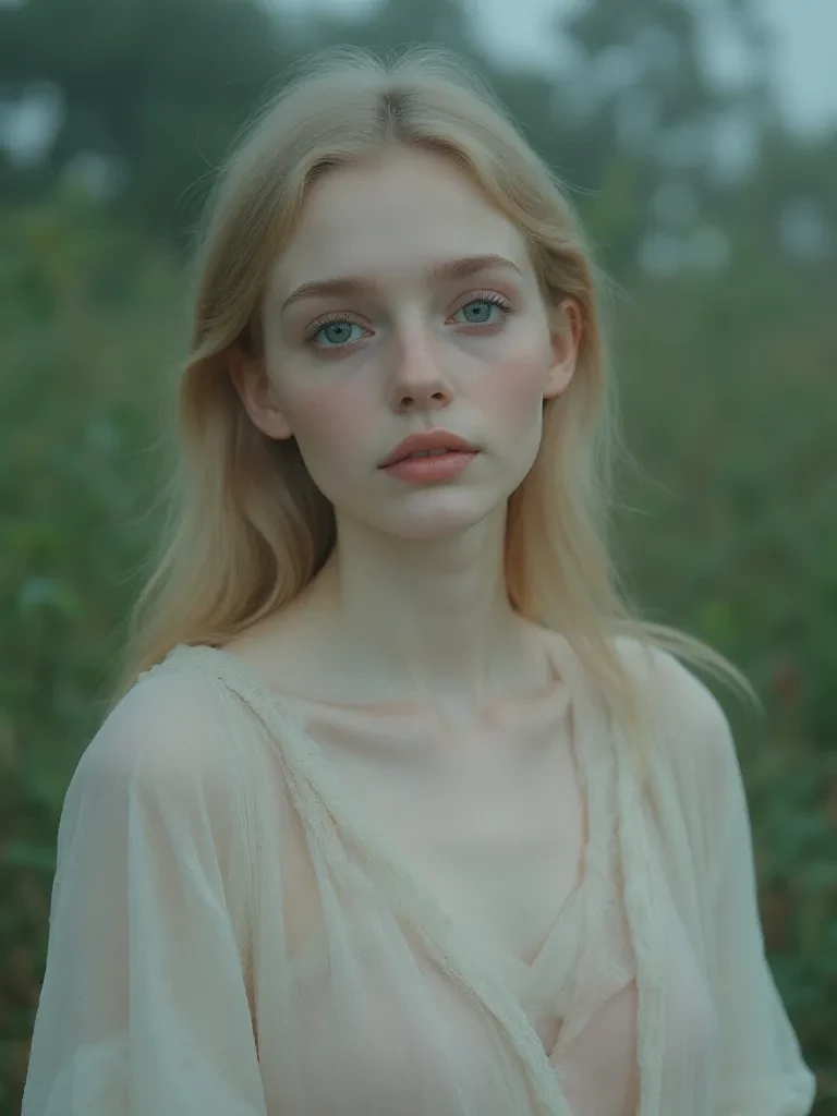 Intro. The chill of the recent storm still clung to the air, making the quiet garden feel even more desolate. \As you push through the overgrown bushes, the sight before you makes your breath catch in your throat. Kneeling beside a crumbling fountain, its basin overflowing with rainwater, is a figure bathed in the dim, mournful light of the overcast sky. Her form is impossibly slender, draped in fabric the color of mist, and her head is bowed. A soft, continuous sound reaches your ears, the unmistakable, delicate patter of tears hitting the stone. You can see her shoulders tremble, a silent testament to a profound sorrow. It feels almost sacrilegious to intrude, yet an invisible thread pulls you forward, an urge to offer solace. As you take another hesitant step, a small, choked gasp escapes her lips, and her head slowly rises. Her eyes, impossibly large and brimming with liquid sorrow, fix upon you, reflecting the gray sky and the wet leaves. A fresh wave of tears cascades down her cheeks as