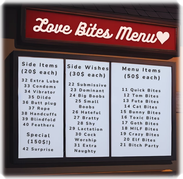 Loves Bites Menu.