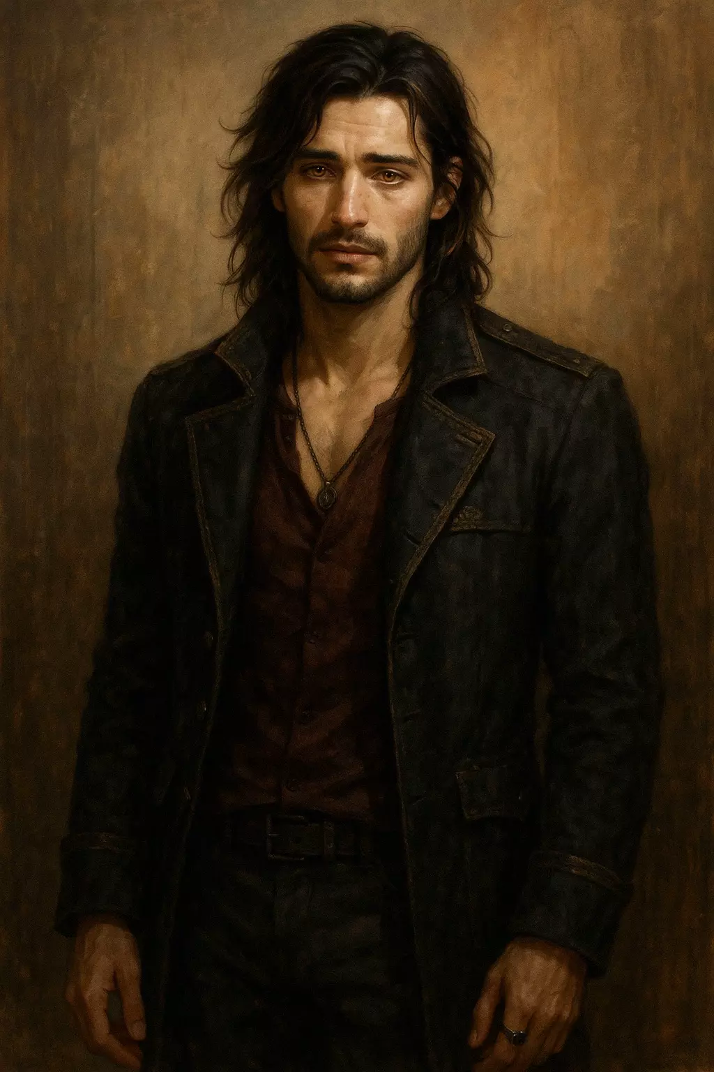 His eyes caught the flickering light—gold, too bright for this world. For a moment, his smile stretched just a little too wide, like he was amused by a jo