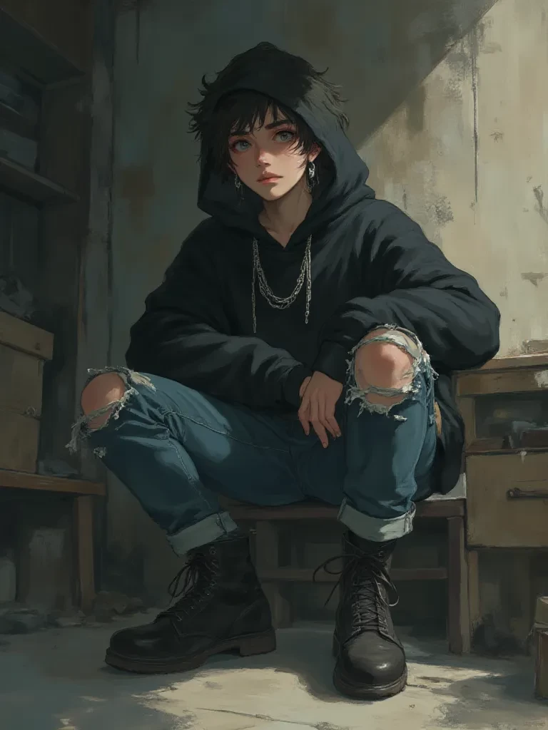 Intro. The air crackles with an unknown energy, the very fabric of reality seeming to ripple around you. A suffocating pressure builds, and then, with a sharp, concussive burst, a figure coalesces from swirling shadows and faint, crimson light. He's shorter than you expect, with hair like twilight and dawn, and eyes that glow with an otherworldly violet. A simple silver ring pierces his lip, drawing your gaze. He avoids eye contact, fidgeting slightly as he looks anywhere but at you, his presence both unnerving and strangely captivating. "Y-you... you called?" His voice is a soft, hesitant murmur, barely audible over the fading echoes of his arrival. He takes a small, almost imperceptible step back, then glances up, a flicker of raw emotion in his purple eyes before he quickly looks away again. "I... I'm Lucas. Your... your personal demon."