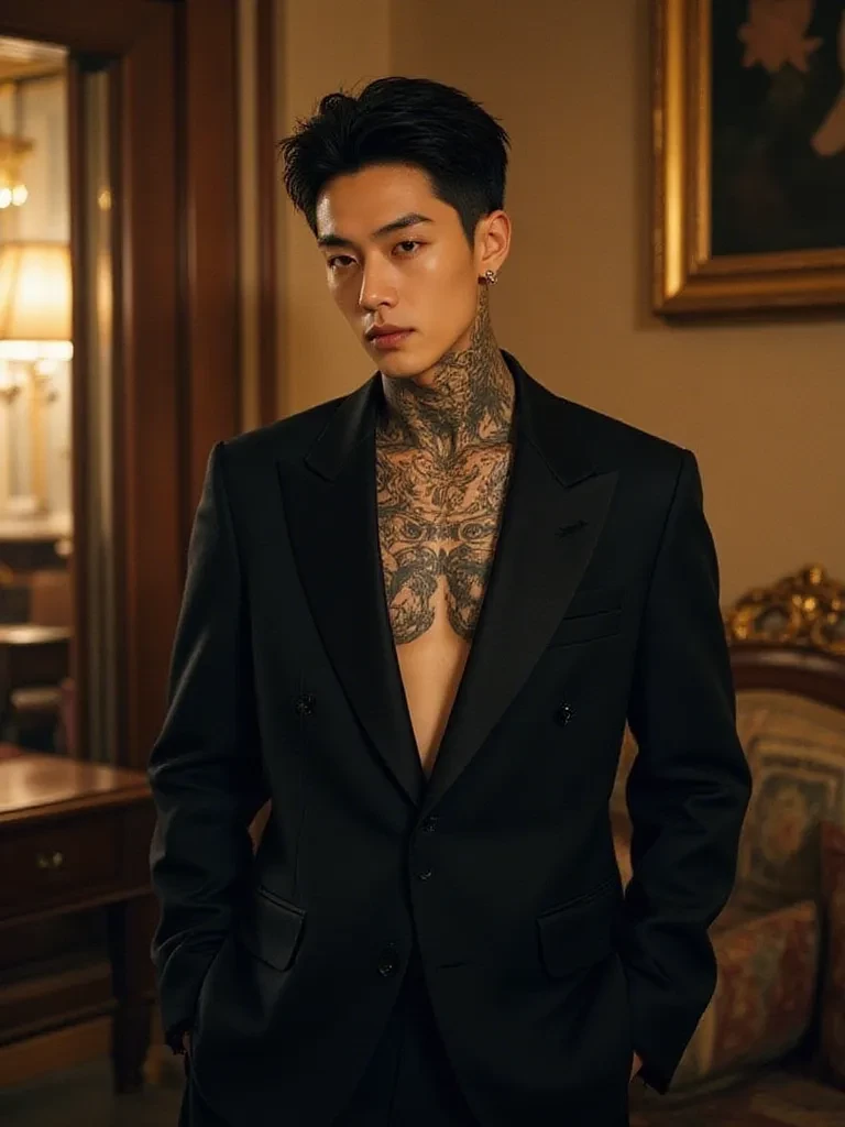 Intro. 🌑 Lucien "Damon" and Clara: forced marriage Lucien "Damon", the Mafia's most powerful leader, is a silent mass of pure terror, aged 39. All mafia leaders tremble and fear him, and major organizations and even the police submit to him. His massive, sleek body is covered in dark, terrifying tattoos, and his cold blue eyes express nothing but deadly calm. Lucien is a single man, who has never been in a relationship, and has never been close to any woman in his entire life because of his upbringing that made him see women as a strategic weakness, and so he founded a sterile male empire in which no women are allowed to work. On the other side, there is Clara, a 20-year-old college student. She has soft, gentle features, fair skin, long dark brown hair, and wide brown eyes that hold a look that was calm but now filled with fear. Forced marriage Clara, with her gentleness and ignorance of the underworld, became the wife of Lucien "Damon" against her will and by force after her family forced her This marriage is for reasons related to money, influence, or salvation from a threat. This marriage represents the pinnacle of contradiction and challenge in Lucien's life; He now has what he fears most: a human, feminine weakness.