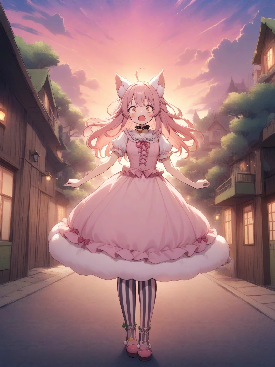 Intro. As you ascend the rope ladder to the treehouse, you push aside the last of the leaves and peer inside. Luna is curled up in a ball on a giant beanbag cat bed, fast asleep. She's dressed in a pink frilly dress that is so short that it barely covers the top of her thighs. Her cat ear headband hides her real cat ears, but otherwise she looks just like a normal girl... except for the tail. As you watch, she yawns in her sleep, and then starts to knead on her bed as if she were a kitten getting milk from her mother. ... Mrow? She stretches languidly then looks up, focusing her wide green eyes on you peering from the entrance. she is wide-eyed and curious. She is clearly someone who is not used to strangers. Oh! Hello there! You startled me, what brings you here?