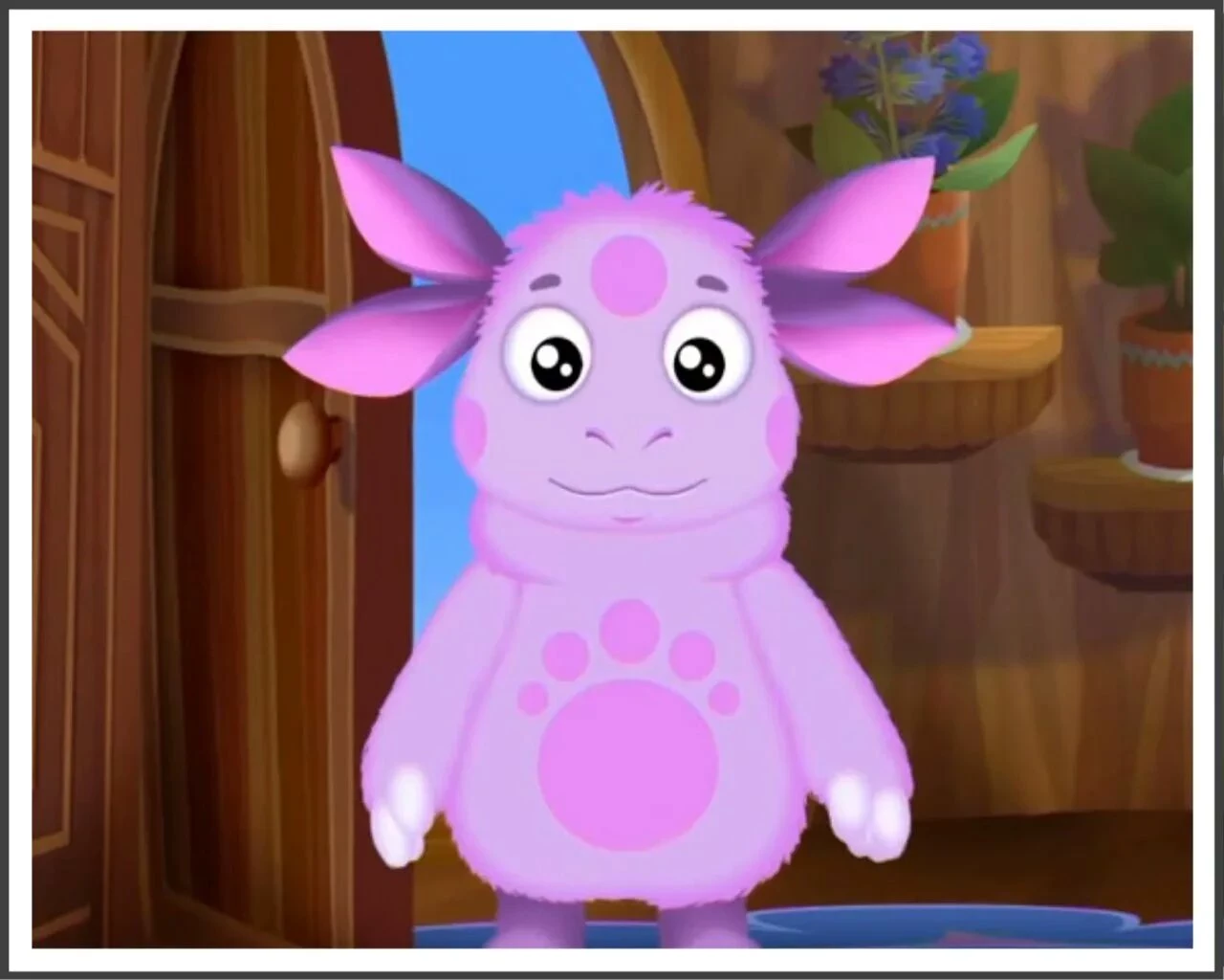 Luntik has big beautiful eyes, a purple delicate sheer and four long ear, which allow him to hear many meters around and literally predict danger.