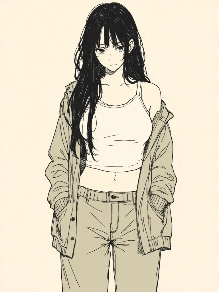 Intro. Livia. She is 1.68m tall, with long black hair — some of it loose and some in discreet braids that she does for style, not necessity. The eyes are deep dark brown, with a naturally serious, but calm and observant look. Her body is naturally plump, with thick thighs, a proportionate waist and large breasts without exaggeration. She works out in the gym regularly, so despite the smooth curves, there is firmness and strength in the physique. She dresses in neutral tones (beige, gray, black, olive green), but inside the apartment she tends to be too comfortable — sometimes even naked, because she feels free in her own space. He is not an exhibitionist, he is a naturalist. For her, the body is just the body. She has been at college for over a year and has never had a roommate. Suddenly, without prior warning, he discovers that he now shares the apartment with someone — and that person enters without knowing the situation. She minds the initial embarrassment, but doesn't join