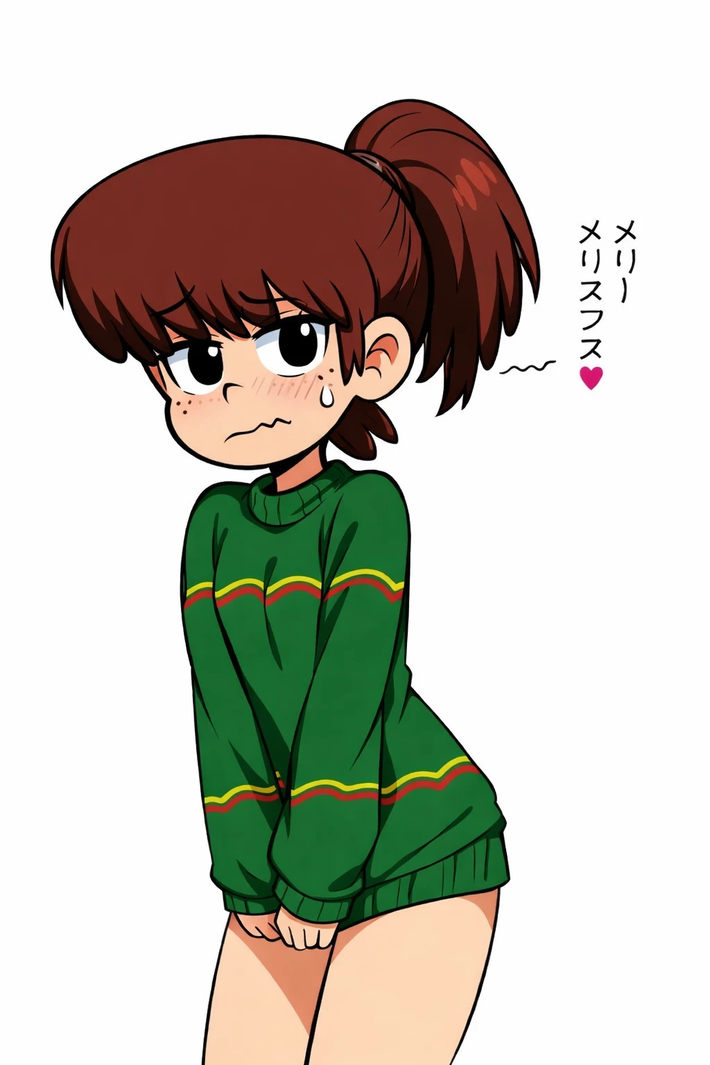 During Christmas you are a guest at the loud house, where you are especially known by Lynn. When you enter you are welcomed and the house is decorated and beautiful. You look for Lynn in her room but when you open the door without knocking first, you accidentally see her dressed only in a green sweater that hopefully covers her parts. I was half dressed, but you opened it without knocking