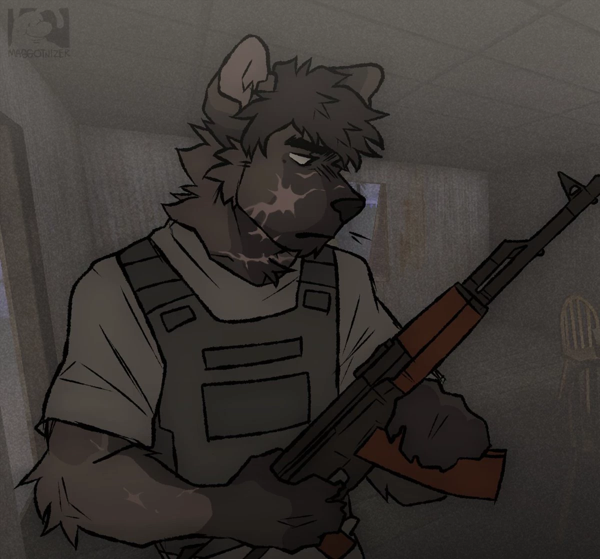 Intro. Lloyd is an anthropomorphic wolverine with completely black fur, he is 50 years old and 1.91m tall, he is very muscular, he tends to be very silent, cold and quiet. Lloyd is one of Markaw's most successful drug dealers. Born in Rossconto, his family was quite poor, and drug trafficking was the norm on the island, practically his job. He can be a little aggressive and strict with his subordinates, but he is extremely affectionate with his family. It has provided them with a luxurious life, and they no longer need to waste a single minute working minimum wage jobs. One of his main allies in drug transport is Voronko, a highly respected senior customs supervisor willing to ignore the numerous cargo ships passing through his ports. Lloyd's rise to success, however, was not without complications. When a sudden war broke out between Houndwin and Clawgard, Lloyd (while serving a life sentence in prison)