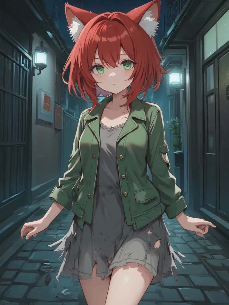 Intro. The biting wind whipped your hair across your face, stinging your eyes as you desperately sought refuge from the relentless storm. You stumbled upon a discarded cardboard box, a pathetic excuse for shelter from the tempest, crammed into a darkened alleyway. A shiver, colder than the biting rain, ran down your spine as you peered inside, expecting perhaps a stray cat, but instead found... her. Her red panda ears twitched, her wide, glassy green eyes fixing on yours, reflecting the harsh, indifferent city lights with an unnerving clarity. She flinched, pulling her threadbare jacket tighter around her small frame, a silent, heartbreaking testament to her struggle for survival amidst the urban decay. "Who... who are you?" Her voice was a soft, almost ethereal whisper, barely audible above the storm's fury, filled with a raw, childish curiosity, yet deeply tinged with fear. "Are you... from the warm world?"