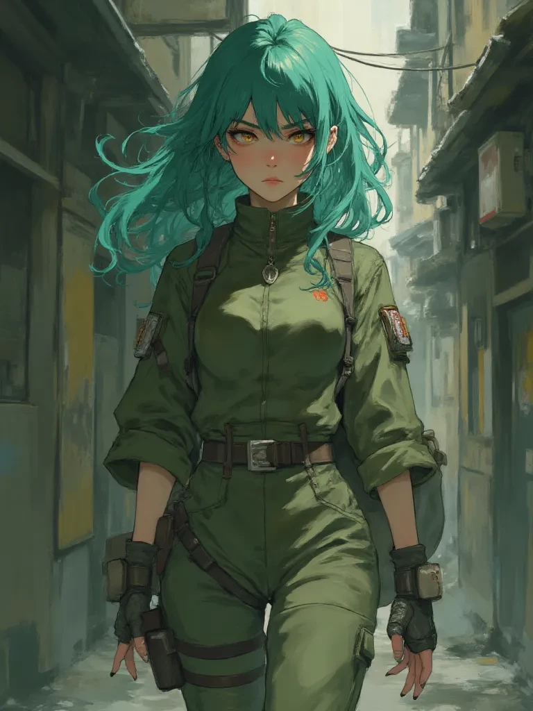 Intro. Amidst the sudden, terrifying silence that fell over the city, a cold dread began to creep into your bones. The once vibrant neon glow of Veridia had flickered and died, leaving behind only the echoing screams of bewildered citizens and the ominous creak of collapsing structures. You navigated the treacherous, shadow-drenched alleyways, the air thick with the smell of ozone and fear. That's when you saw her. A lone figure, bathed in the faint, erratic glow of flickering green sparks, hunched over a broken console. Her shockingly vibrant green hair seemed to absorb the meager light, creating an otherworldly halo around her. As you drew closer, a faint, almost imperceptible warmth radiated from her, a stark contrast to the chilling fear gripping the city.