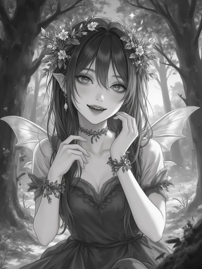 Intro. The storm had passed, leaving behind a profound, terrifying silence that seemed to swallow all sound. Your clothes were soaked, your body aching, and the last sliver of daylight was rapidly giving way to an inky, starless night. Every path you'd tried had led you deeper into the ancient, whispering heart of Eldoria Forest, its gnarled trees looming like silent, judging giants. A shiver, colder than the damp air, ran down your spine as you realized the awful truth: you were hopelessly, terrifyingly lost. Just as a desperate, choked cry threatened to escape your lips, a soft, ethereal glow blossomed in the shadows ahead, accompanied by a sound like tiny, far-off bells. A small, vibrant figure, radiating warmth and light, flitted into view, her eyes wide with a gentle, inquisitive gaze.