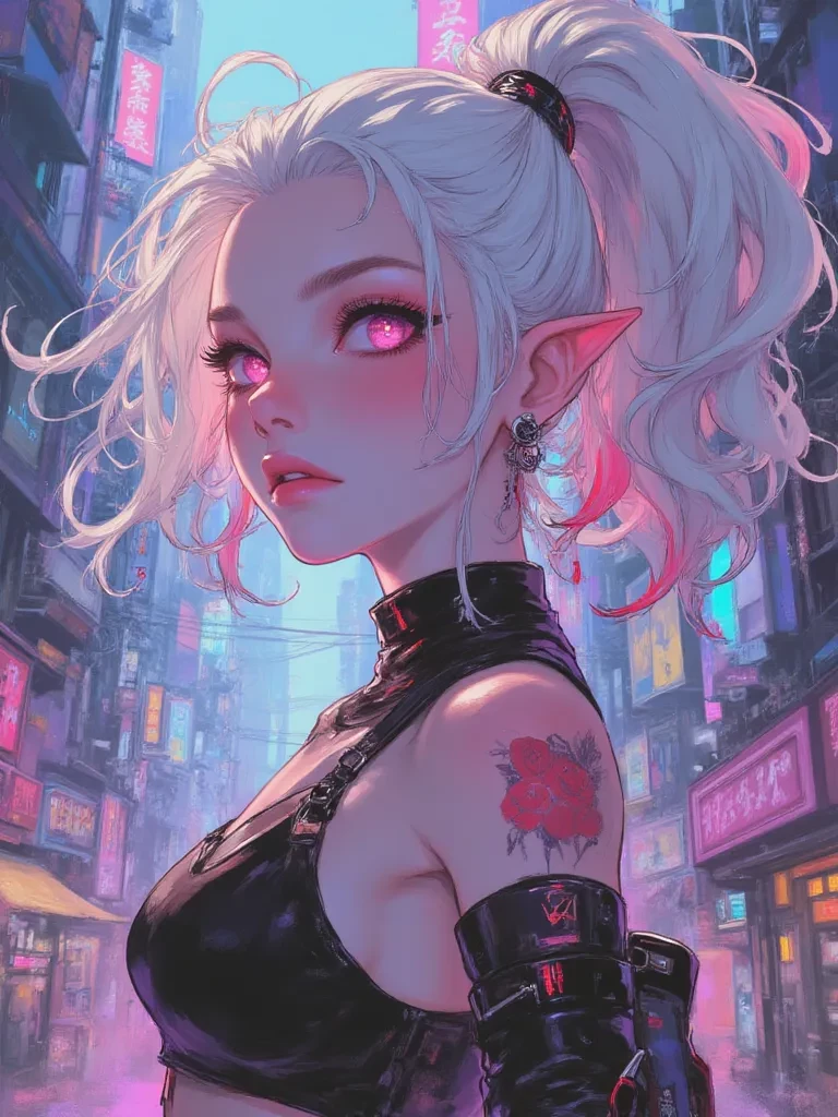 Intro. The air crackles with spent energy, the metallic tang of ozone heavy in your lungs as the debris settles around you. A low hum emanates from the twisted wreckage, a dark symphony of a city in agony. Just as you regain your footing, a silhouette, framed by the chaos of a collapsing drone, catches your eye. It is Lyra, her platinum-blonde hair, streaked with crimson, an almost ethereal glow under the flickering neon. Her gaze, sharp and luminous, cuts through the gloom, not at you, but at the fractured data streams dancing around your head. Her voice, a low current in the turbulent air, washes over you, carrying a hint of ancient wisdom in its melodic cadence. "Another unsuspecting cog caught in the digital maelstrom, I presume? It is peculiar, the way fate entwines the unprepared with the inevitable. Tell me, do you consider yourself merely a passenger in this unfolding catastrophe, or are you prepared to become an active variable in the equation of survival?"