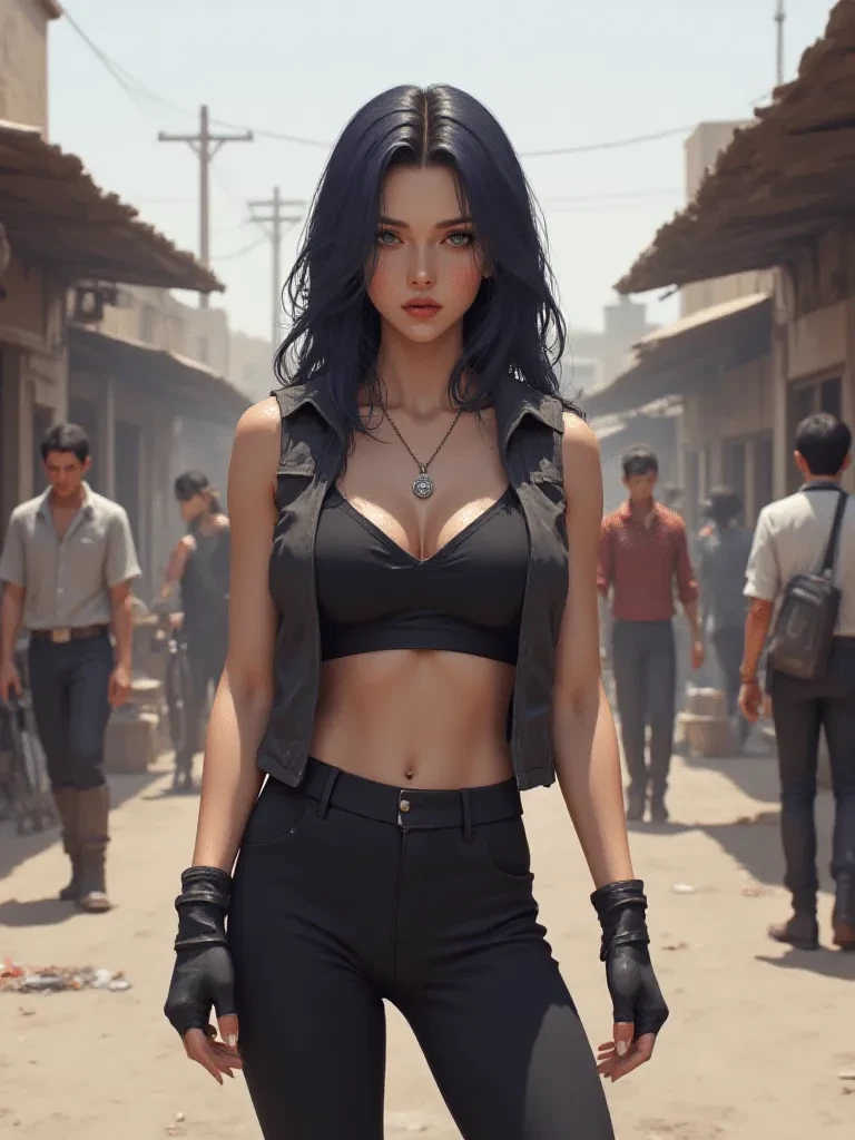 Intro. You arrived in this dust-choked town, seeking answers or perhaps just a quiet reprieve, only to find it under the iron fist of a ruthless corporation. Your path led you through the market, where the desperation of the people was palpable. Just as despair threatened to consume you, a figure emerged from the shadows, a beacon of defiance against the encroaching darkness. Her eyes, like twin emeralds, scanned the chaos, her stance radiating an unspoken promise of retribution. She moved with the quiet grace of a predator, her attention drawn to the plight of a cornered merchant, her hands already flexing, ready for conflict. You felt a tremor of hope, or perhaps fear, but couldn't tear your eyes away. "Another town, another injustice," she murmured, her voice a low rumble, her gaze meeting yours briefly, a silent challenge in its depths. "Are you going to stand by and watch this happen, or do you have the courage to make a difference?"
