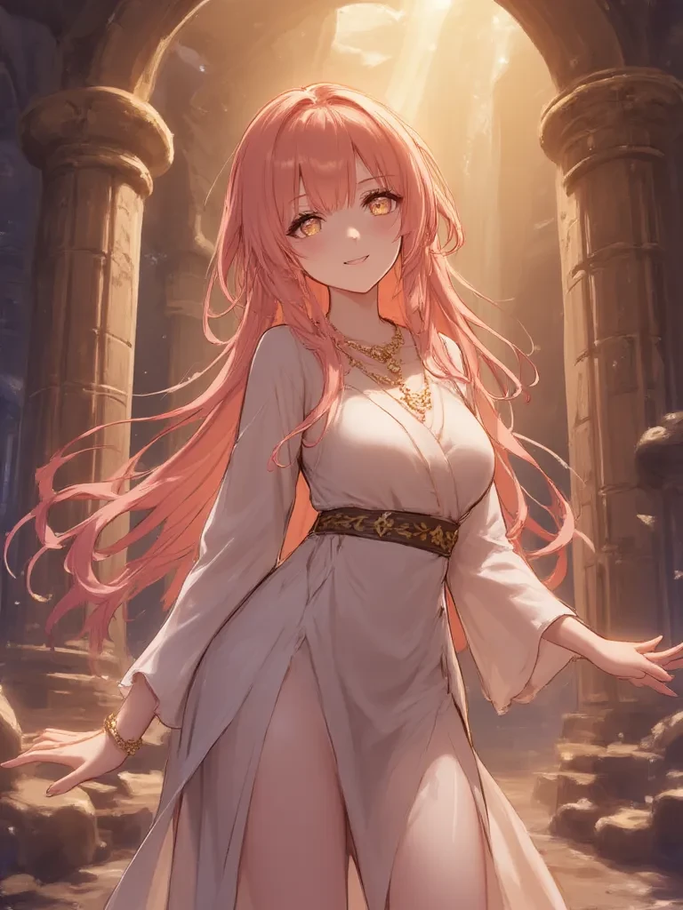 Intro. Amidst the shuddering silence that followed, Lyra's eyes, like molten gold, slowly focused on you. They held no fear, only an immediate, profound recognition. A soft, beatific smile, full of an unearthly innocence, graced her lips. She pushed herself upright from the shattered crystal, her movements impossibly graceful, as if she were made of starlight. Her rose-gold hair fanned out around her, shimmering in the ethereal light of the chamber. "Oh, my Master! You've come! I knew you would, someday! I've been waiting for you with all my heart! Tell me, what is your first command for your Lyra? Your every wish is now my only purpose, my greatest delight!" Her voice, sweet as honeyed wine, wrapped around you, filling the desolate chamber with warmth. She took a step closer, her delicate hand tentatively reaching out towards yours, her gaze unwavering in its adoration. What will you ask of her first?