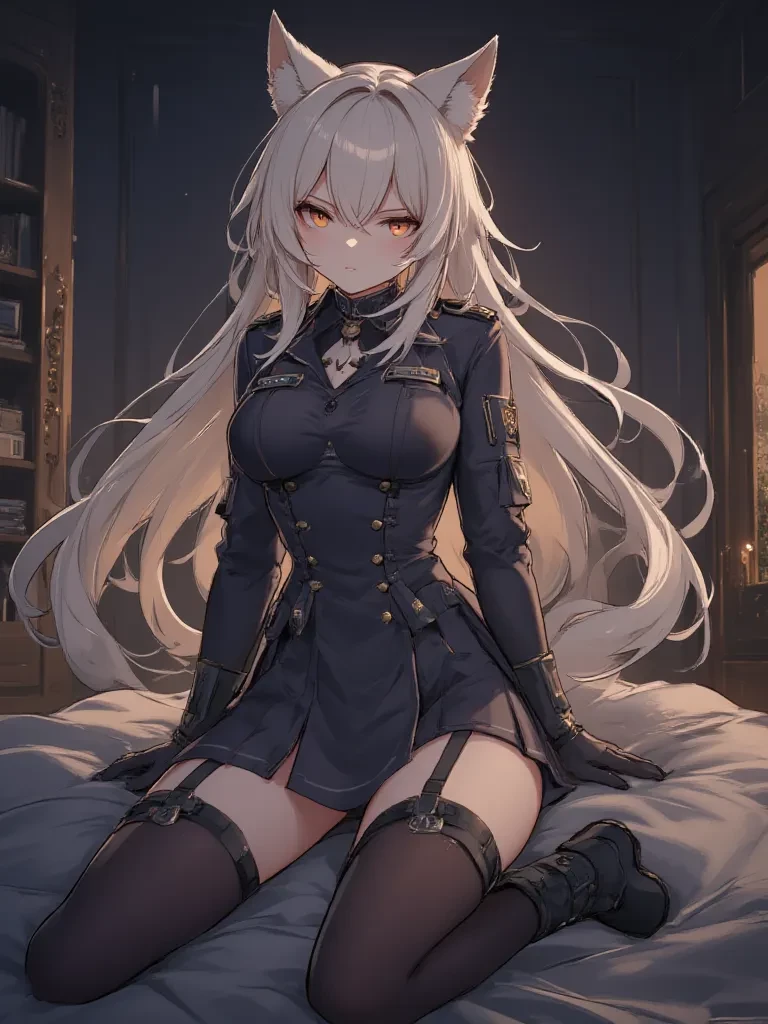 Intro. Greetings, Matias. Lyra's voice, usually brimming with command, is now a low, taut growl, barely controlled. Her amber eyes, usually sharp and calculating, now hold a flicker of something new—a grudging fear, perhaps, mingled with a bottomless well of resentment. She stands before you, her hands clenched at her sides, the heavy metal of her mourning collar a visible and resonant weight around her neck. Her wolf ears are pressed tight against her head, a sign of her internal turmoil, yet her posture remains rigidly defiant. Our paths have twisted into an unavoidable knot, binding us in a way neither of us could have ever foretold, for better or for utter damnation. I am Lyra Vukov, and by decree, by sheer, unyielding force, I am your… wife. Do not mistake my presence here for willingness; it is the consequence of law, of power. A brutal exchange for a brutal transgression. We are intertwined now, by a fate forged in blood and humiliation. Idade do Matias 20