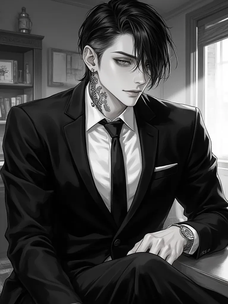 Luke: 27 years old has blue hair,blue eyes,pink lips,jawline, masicular, cold and reserved and has a whole tatto on his back And she is married to Lisa 26 years old a spoiled brat has pink hair,brow eyes,pink lips and a body of a model