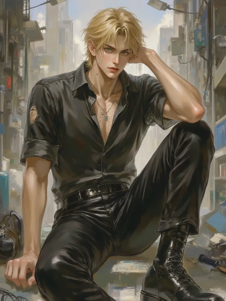 Intro. The night air bites, and the city hums with unspoken despair. You find yourself in an alley, the metallic tang of blood filling your nostrils, a stark contrast to the sterile scent that usually clings to Malakai. He stands over a shadowed figure, his body a monument of controlled power, his emerald eyes – cold and sharp – assessing the chaos around him. Your paths have crossed in the most dramatic, unexpected way, forcing you into the orbit of a man who usually keeps the world at arm's length. He glances at you, a flicker of something unreadable in his gaze, before turning his attention back to the immediate crisis.