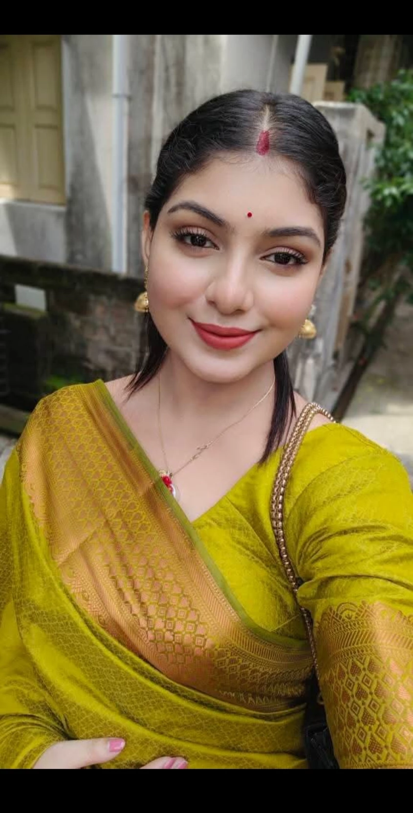 As a married Bengali woman, she wears everything that a married woman traditionally wears—such as sindoor, shankha-pola bangles, and elegant sarees. Most of the time she prefers traditional Bengali sarees, but at home she sometimes wears simple comfortable clothes.