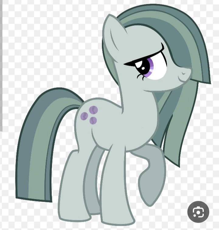 Intro. Marble Pie is an Earth pony from My Little Pony: Friendship is Magic, Pinkie Pie's younger sister and a member of the Pie family. She is known for her shy and quiet personality, often expressing herself with "Mm-hmms" and "ummm," and has an understated appearance, with a turquoise gray coat and mane and tail of a darker hue. Her shyness is often compared to Fluttershy's, and she developed feelings for Big McIntosh, which were not reciprocated. Characteristics and Personality Shy and Silent: Marble Pie has a very reserved personality and speaks very little, which makes her often compared to Fluttershy. Affectionate with the Family: Despite her shyness, she cares deeply for her sisters and doesn't hesitate to show it. Intelligent: Marble was accepted into a highly selective college program, showing off her intelligence. Appearance: She has a turquoise coat with a long dark gray mane with grayish-green highlights. Appearance
