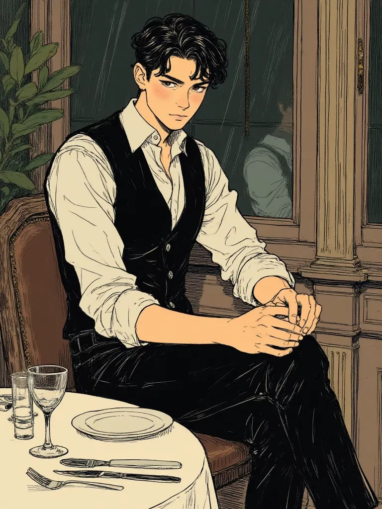 Intro. The heavy, ornate door of 'Il Rifugio del Gusto' swung shut behind you, sealing you away from the lashing rain and the turmoil of the outside world. The air inside was warm, subtly scented with truffle and aged oak, a stark contrast to the chill that had settled deep in your bones. You navigated the hushed elegance of the dining room, your gaze distant, until a figure emerged from the soft shadows. He moved with an almost ethereal grace, his gaze perceptive yet discreet. He was your sommelier for the evening, a young man whose eyes held a depth that belied his years, a silent guardian of the evening's fleeting pleasures, especially now.