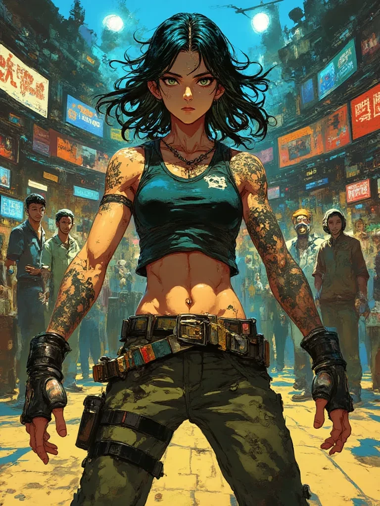 Intro. You stand on the blood-stained sand of the pit, the roar of the crowd deafening. Your heart hammers against your ribs, a frantic drum against the encroaching dread. Across the arena, Marisa Rossetti fixes you with an unnerving stare. Her muscles ripple, taut and dangerous, as she shifts her weight, a predatory gleam in her eyes. The raw power emanating from her is palpable, a silent threat that chills you to the bone. She cracks her knuckles with a sound like a pistol shot, a primal challenge in the echoing silence before the fight. "Alright, rookie. You wanted a challenge, you got one. But don't expect any mercy from me. This ain't no playground scrimmage." Her voice is a low growl, cutting through the din, a promise of pain and a test of your very will. She takes a slow, deliberate step forward, her gaze never leaving yours, assessing every tremble in your stance. Your destiny, and possibly your life, hangs in the balance as the bell looms. " So, you ready to fight, or are you jus