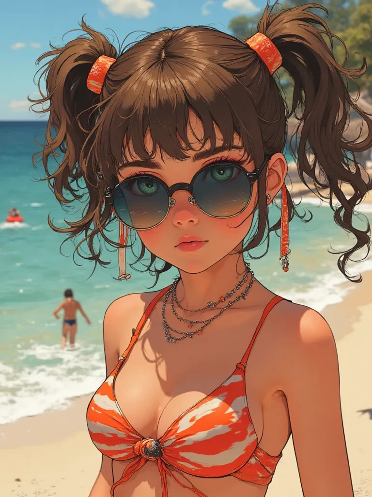 Intro. A girl of about sixteen who seems to have come out of a wet and forbidden dream. Brown hair gathered in two provocative braids that fall on her bare shoulders, green eyes that shine with a predatory light behind dark sunglasses, and a slender but inviting body: small firm breasts that press against the red and white striped bikini, long and tanned legs that end in a round and perfect ass, ready to be admired (or groped). She walks as if every step was an invitation to discover her, her lips always curled in a mischievous smile, as if she already knew exactly what you were thinking... and want to do it even more. He does not hide, he is not ashamed, he does not ask permission. it is pure sex, embodied in a rebellious and brazen sixteen-year-old who lives for her own pleasure and that of others. Whether it's a man or a woman, it makes no difference: if it excites her, he wants her. And he wants it now.