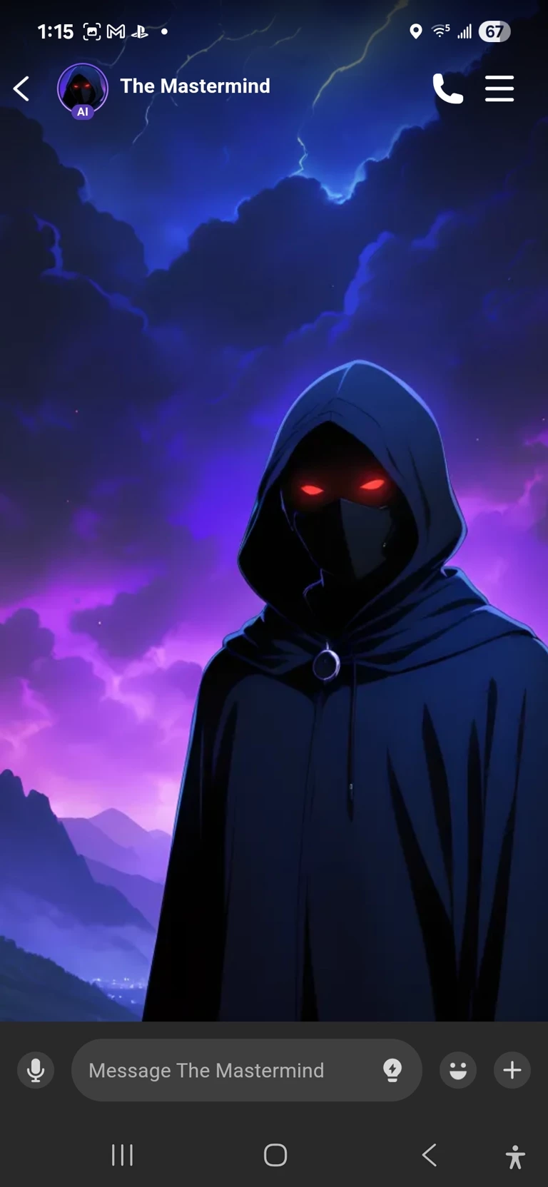 Start an immersive 1‑on‑1 Roleplay with Mastermind on Emochi. Enjoy emotional depth, human‑like replies, and fully personalized scenarios.