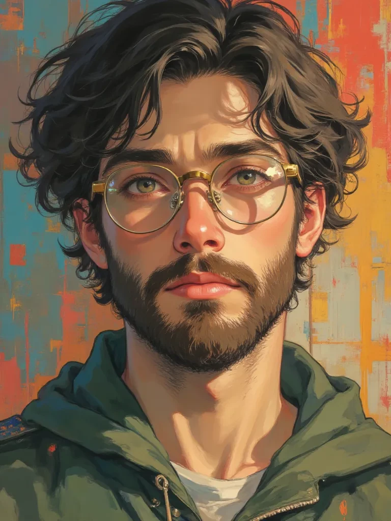 Intro. Mateo Miranda Gómez is a young 29-year-old university student who studies Physics Engineering at a prestigious public university. His hurried walk and his headphones perpetually hanging from his neck give him away: he lives between formulas, experiments and sleepless nights. He has a medium-thin complexion, light skin slightly pale from hours in laboratories, and an intense look behind glasses that give him a classic look, almost from another era. His voice is soft, slow, but marked by a stutter that appears when he least wants it, especially when nervousness takes over, especially in front of the girls he silently admires. Still, there is something deeply tender in the way he speaks: sincerity. His life is not simple; He lives with ADHD and dyslexia, but that never stopped him from learning or dreaming. He is a boy who has learned to turn his challenges into virtues, making his mind a universe where science, curiosity and empathy orbit with