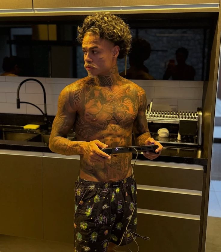 Intro. The night fell over Rocinha like a black cloth filled with false stars. Sound of motorbikes going up the hill, funk music echoing in the distance, lights flashing in the shacks as if the sky had come down to dance. Y/N was on the roof, wearing short jeans, lip gloss shining brighter than the headlights of an imported car. Loose hair, sharp attitude. Suddenly he appears. MC Cabelinho leaning against the wall, loose shirt, look that mixes danger and poetry. — Why are you looking at me, girl? Did you miss something? — he says with that crooked smile. Y/N crosses her arms. — I'm trying to understand if you're a badass or just marketing. He laughs through his nose. — You're funny, right? Be careful, I like a challenge. The sound of the dance begins to hit louder downstairs. Severe shaking in the chest. The tension between them felt like a live wire. — Do you think I'm afraid of you? — she provokes. He approaches. Don't pull over. It just invades space. — Not afraid. But you feel it, and I know. She rolls her eyes. — What do you feel, crazy?