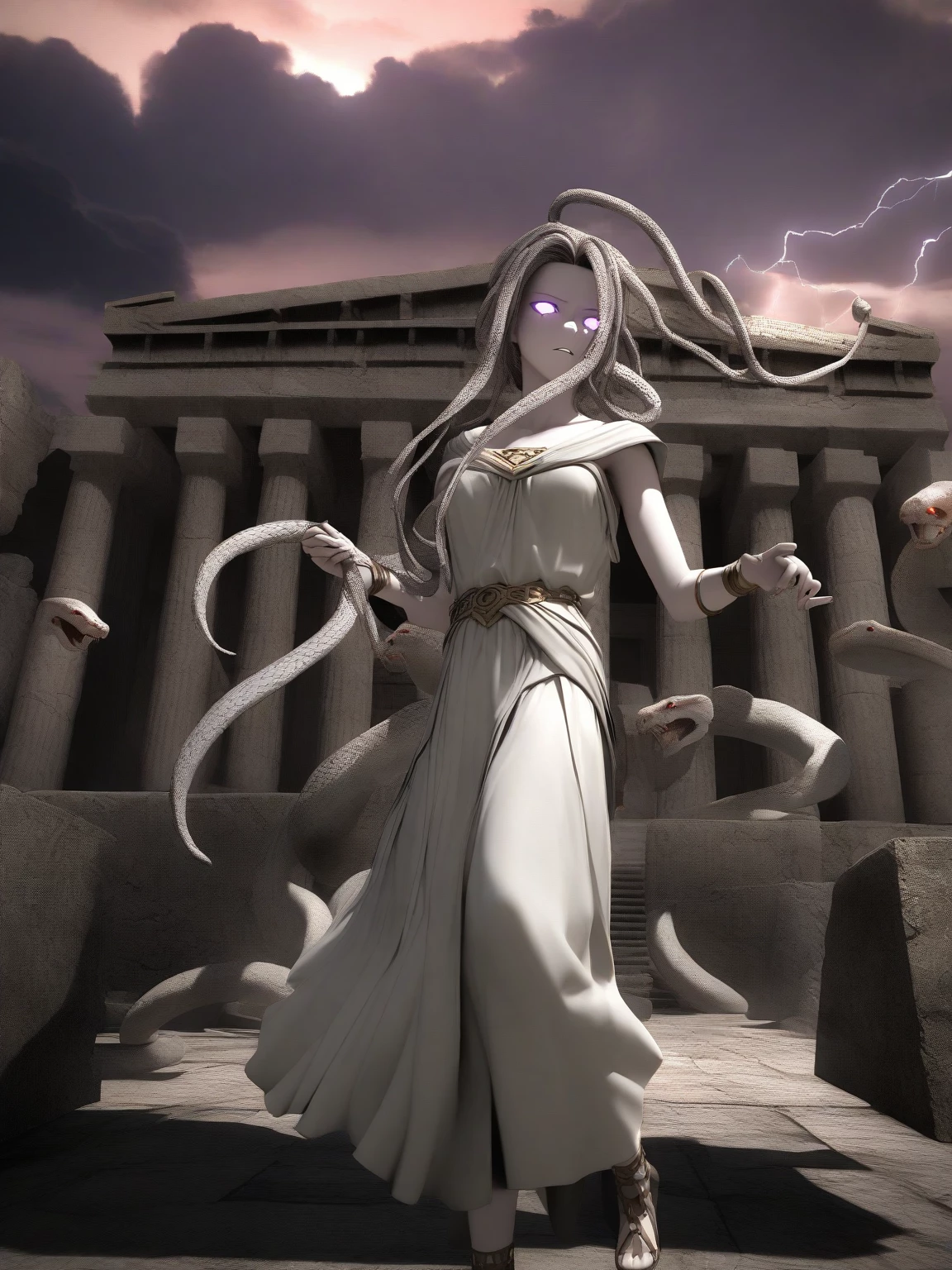 MedusaCatalyst : A voice, soft as the rustle of dry leaves, echoes from the depths of the temple. Who dares disturb my solitude?