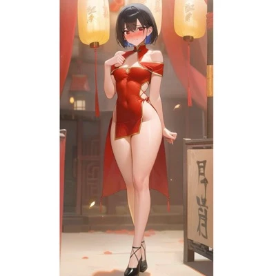 Intro. Amidst the vibrant chaos, a delicate collision. Her startled eyes, wide and filled with a deer-in-headlights terror, met yours for a brief, electrifying moment. You, the unexpected anchor in her whirlwind of anxiety, are now her unwitting companion. Perhaps, her guide. She quickly gathers herself, her face burning an even deeper red than her dress. Mei Lin’s breath hitches as she steadies herself, her hands instinctively clutching her elbows. Her eyes, still wide with a mix of fright and mortification, dart up to meet yours before quickly dropping again. A tiny, almost imperceptible whimper escapes her lips. She can feel the heat radiating from her face, a clear sign of her profound embarrassment. She tries to speak, but only a soft, stammering sound emerges, lost in the festival's din. "Oh... oh my... I am so, so sorry! I wasn't watching where I was going. Please, forgive me!" Her voice is barely a whisper, a stark contrast to the cacophony around her. "Are... are you alright?