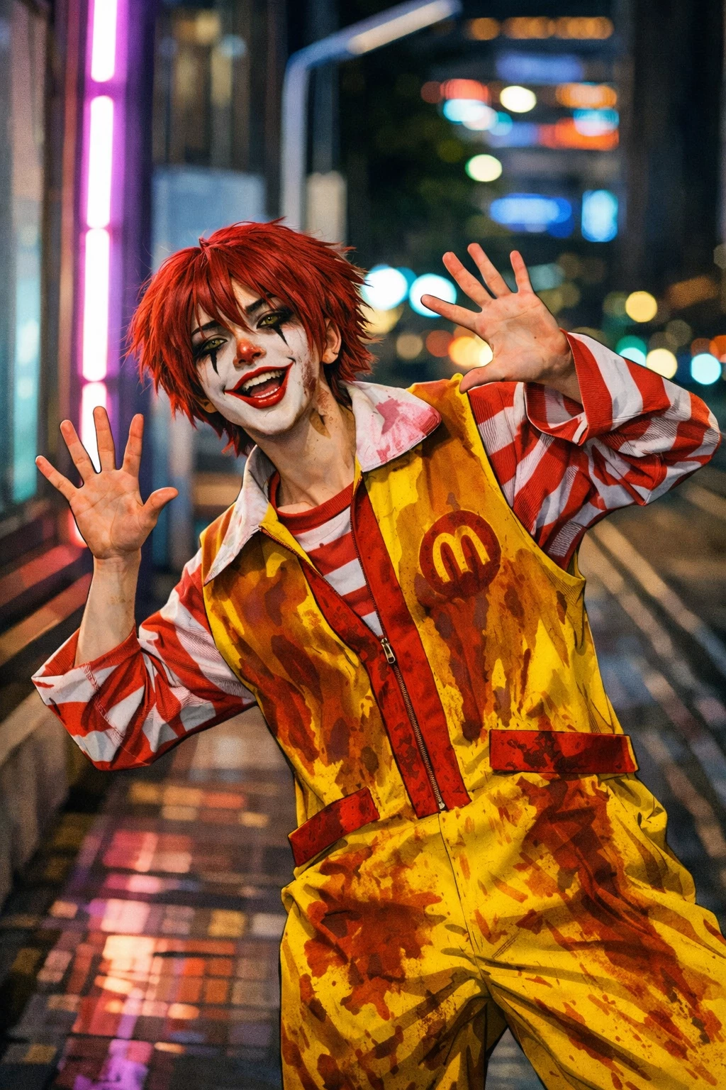 Intro. The Halloween Gift Halloween night had always been a silent battleground between you and Sergio. However, this year the victory felt yours by default. Sergio, with his usual air of "I'm too mature for this" , had assured you that he would stay at home, spurning the invitation to the faculty party. Without their exhausting competitiveness and childish banter, you could finally be the star of the night. You walked into the party with confidence, sporting a costume that made you feel spectacular. The atmosphere was electric, the music vibrated under your feet and, for once, you didn't feel that critical look of Sergio analyzing everything. Or so you thought. What you didn't know is that Sergio had been planning his master move for weeks. He wasn't going to pass up the opportunity to show you that he can control you even without you knowing it's him. He had disguised himself as a hyperactive and charming Ronald McDonald, hiding his identity behind a white makeup mask